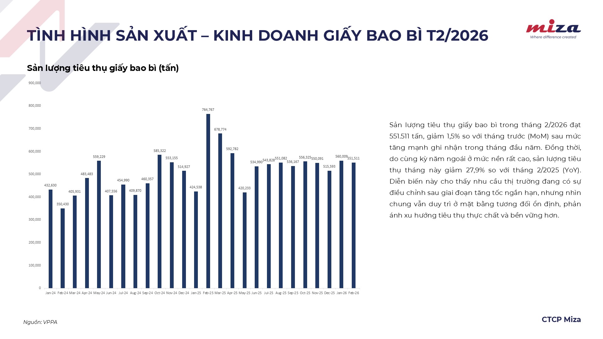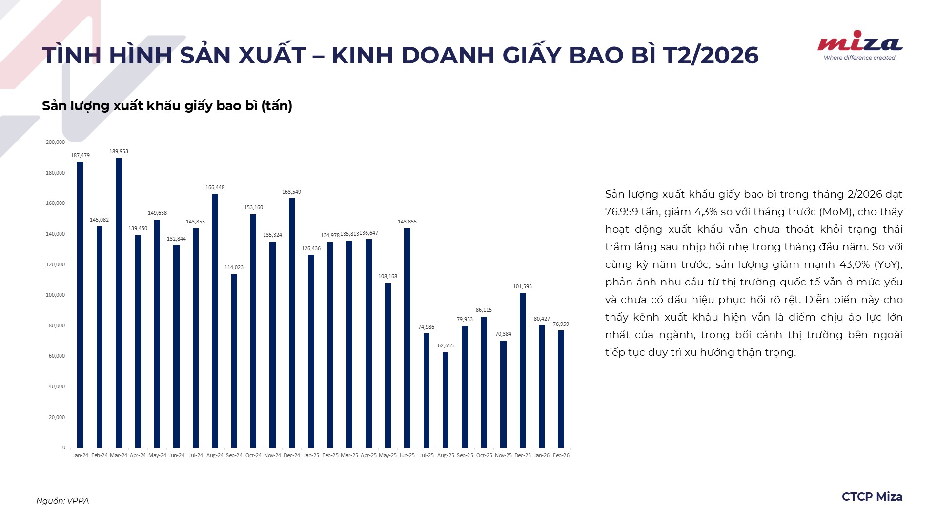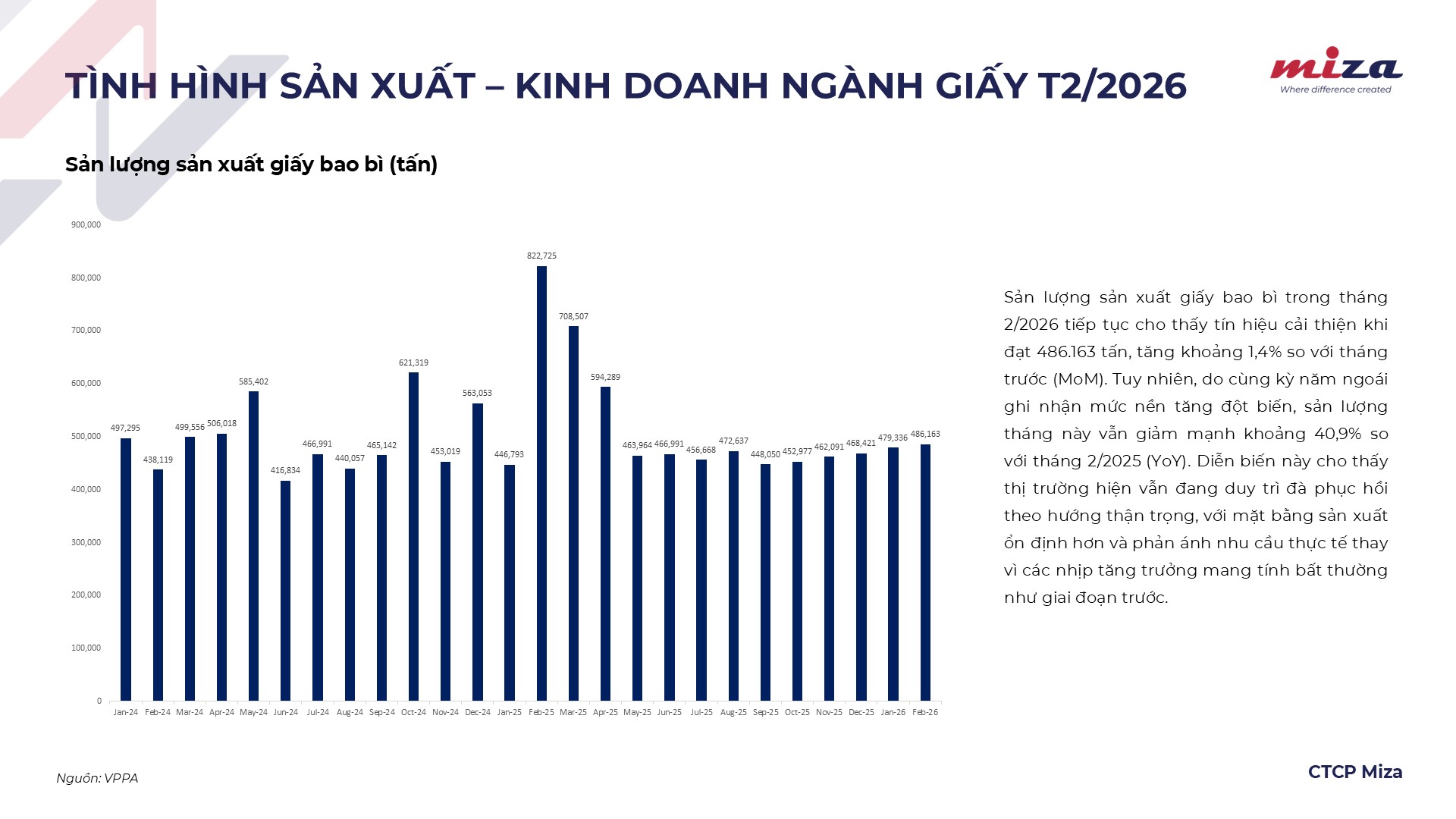 Báo cáo ngành giấy tháng 2 được tổng hợp trong tháng bởi CTCP Miza